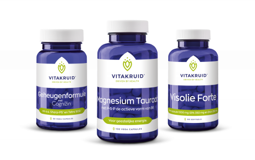 Met de Vitakruid Geheugenbundel heeft u een compleet pakket in handen met verschillende supplementen die u kunnen ondersteunen wanneer u het even niet meer weet. De bundel bestaat uit drie supplementen:- Geheugenformule: goed voor geheugen, leerprestatie en het