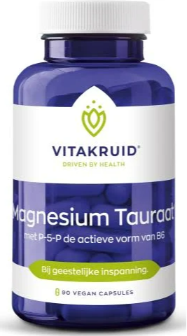 Vitakruid Magnesium Tauraat bevat magnesiumtauraat, een vorm van magnesium dat goed door het lichaam wordt opgenomen door de hoge biologische beschikbaarheid. Magnesiumtauraat is een organische vorm van magnesium en wordt daardoor beter opgenomen dan anorganische vormen van