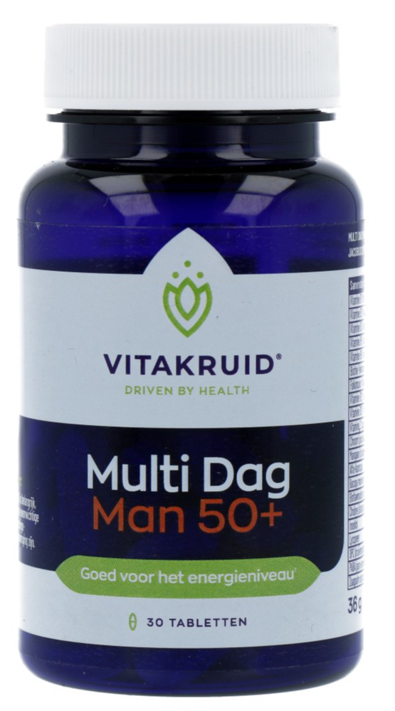 Vitakruid Multi Dag Man 50+ Tabletten (30 stuks) is een voedingssupplement ten behoeve van de vitaliteit en het energieniveau van mannen boven de 50. Met Vitakruid Multi Dag Man 50+ Tabletten geeft u uw lichaam precies wat het nodig heeft om uw vitaliteit en energieniveau op