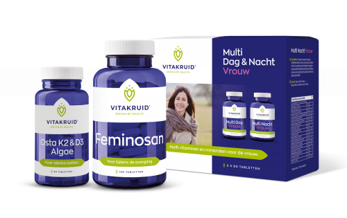 Met de Vitakruid Overgang Bundel heeft u een compleet pakket in handen met verschillende supplementen die speciaal zijn afgestemd op de behoefte van de vrouw tijdens de overgang. De bundel bestaat uit drie supplementen:- Feminosan – complete overgangsformule met engelwortel