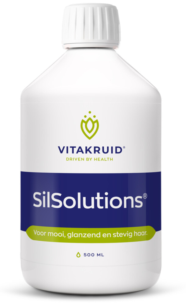 Vitakruid SilSolutions® (500ml) is een voedingssupplement voor stralend haar en een zachte, gladde huid. SilSolutions® bevat hoogwaardig brandnetelextract en organisch silicium voor optimale opneembaarheid. Versterkt met vitamine C. Vitamine C ondersteunt de collageenvorming