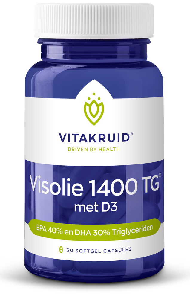 Vitakruid Visolie 1400 TG met D3 Capsules bevat een zeer hoge concentratie omega-3 van >80%. Het bevat maar liefst 1200 mg omega 3-visolie per capsule. Met een zorgvuldig extractieproces is de EPA en DHA van de andere vetzuren gescheiden, waardoor de hoge concentratie