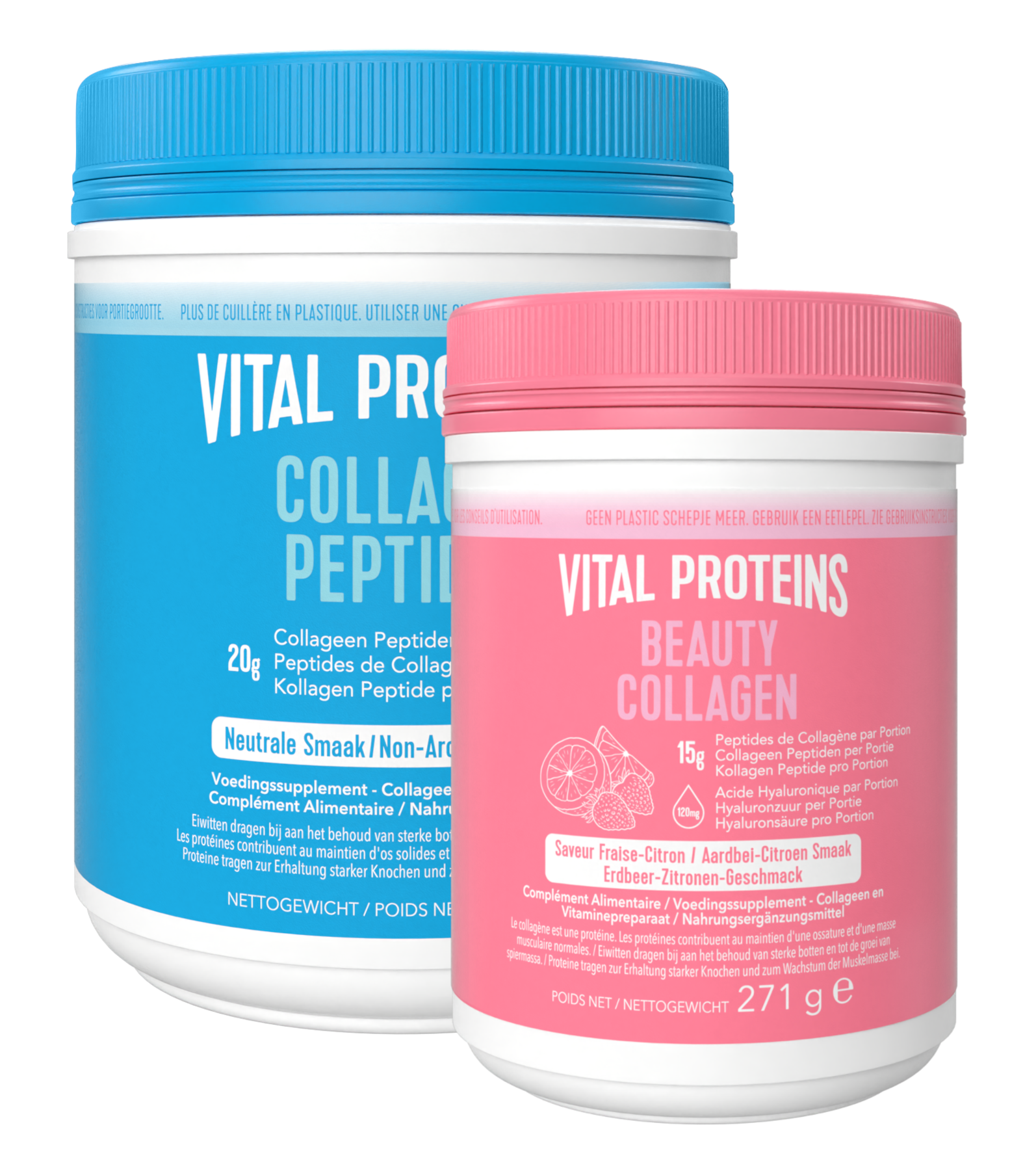 Vital Proteins Beauty Bundel bevat een combinatie van Vital Proteins Collageen Peptiden 567GR en Vital Proteins Beauty Collageen 271GRVital Proteins Collageen Peptiden (567gr) bestaat voor 100% rundercollageen peptiden en is neutraal van smaak, waardoor het gemakkelijk toe