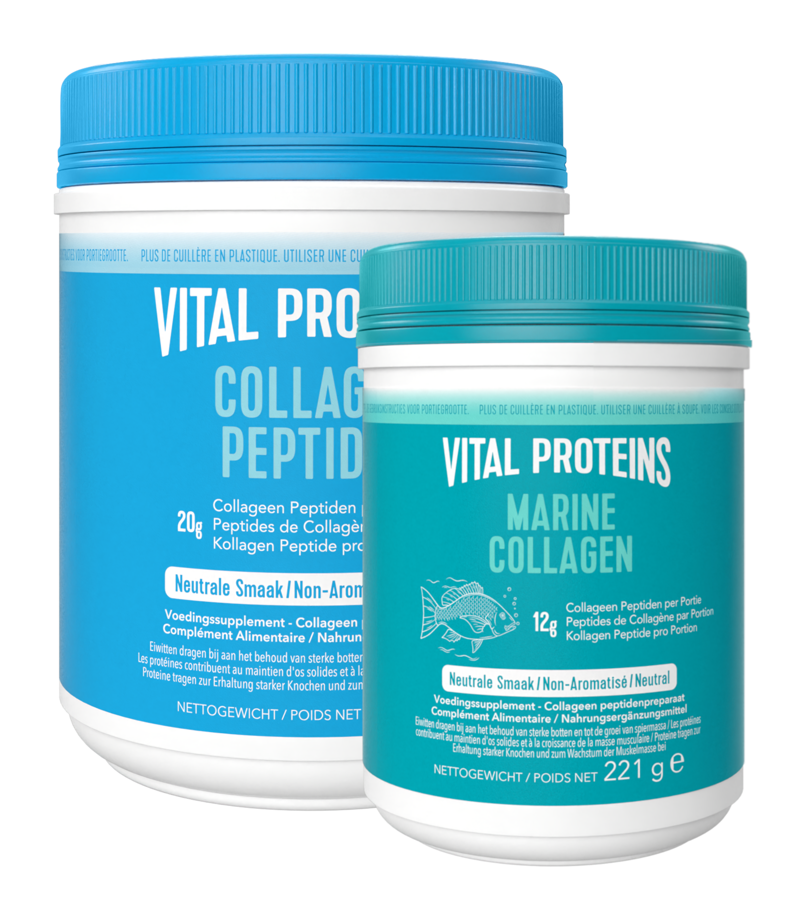 Vital Proteins Best Seller Bundel bevat een combinatie van Vital Proteins Collageen Peptiden 567GR en Vital Proteins Marine Collageen 221GR. Vital Proteins Collageen Peptiden (567gr) zijn gemaakt van één eenvoudig ingrediënt, zijn neutraal van smaak en makkelijk om toe te