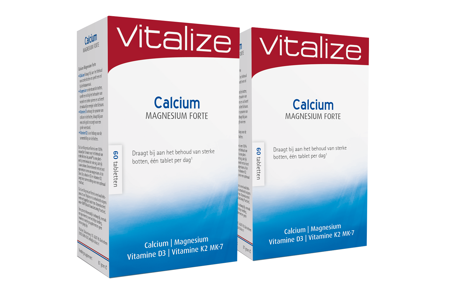 Vitalize Calcium Magnesium Forte is een voedingssupplement met een 100% natuurlijke formule voor het behoud van sterke botten en soepele spieren. Deze speciale formule bestaat uit een plantaardige vorm van calcium, Aquamin genaamd. Deze goed opneembare vorm van calcium wordt