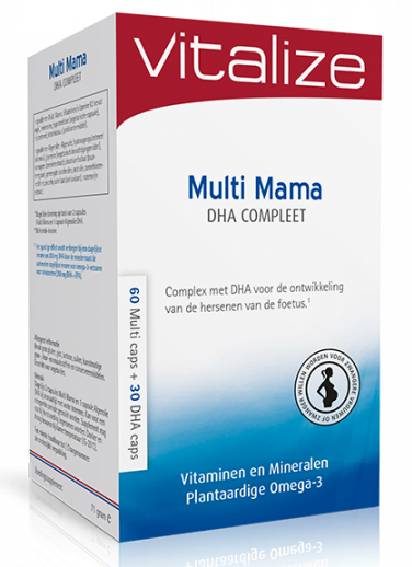 Vitalize Multi Mama DHA Compleet Capsules is een complete multivitamine dat voor, tijdens en na de zwangerschap gebruikt kan worden. Het bevat de belangrijkste vitaminen en mineralen in de juiste doseringen op basis van de laatste wetenschappelijke inzichten. Het bevat naast