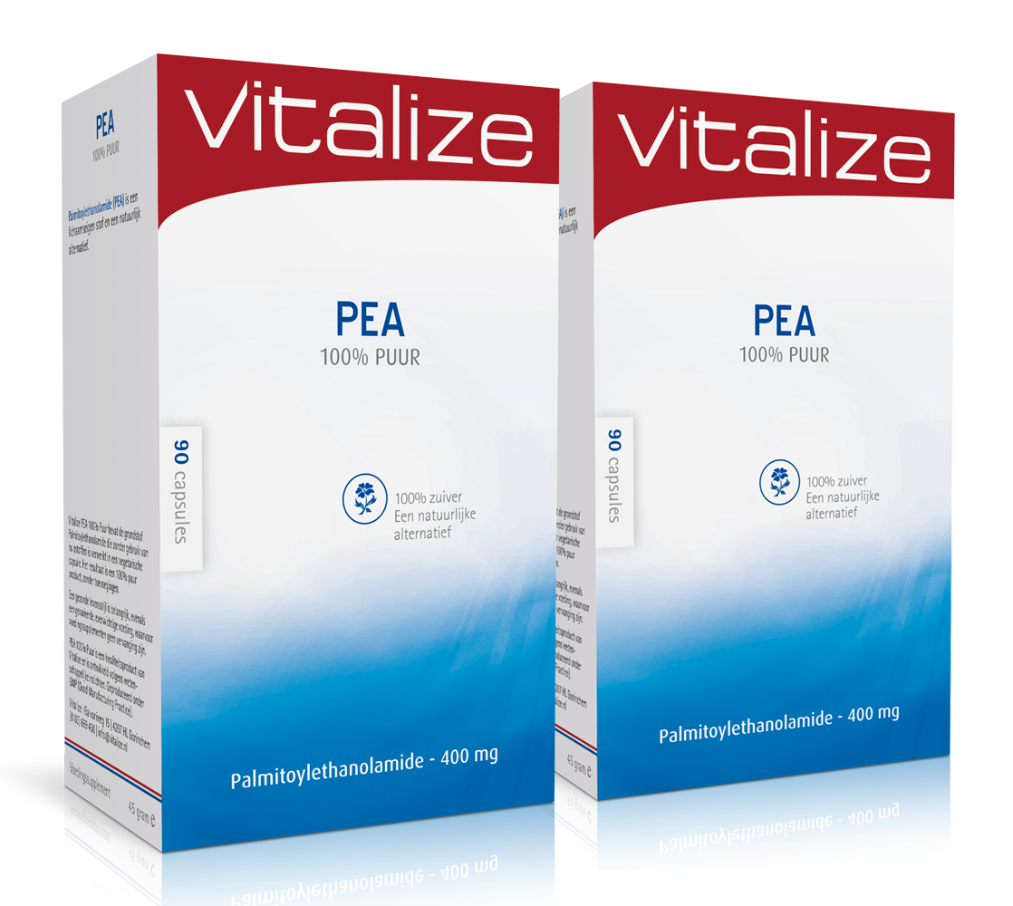 Vitalize PEA 100% Puur Capsules is een zuiver palmitoylmethanolamide supplement. PEA is een lichaamseigen stof die in de cel aangemaakt kan worden als reactie op bepaalde prikkels. De pure PEA capsules van Vitalize bevatten deze stof en kunnen goed opgenomen worden doordat