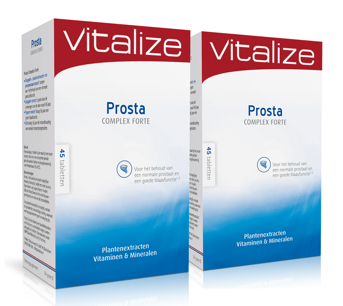 Vitalize Prosta Complex Forte een 100% natuurlijk en hoogwaardig voedingssupplement, speciaal ontwikkeld voor mannen en rijk aan Pygeum, Zaagpalm (saw palmetto) en phytosterol complex. Vitalize Prosta Complex Fortespeciaal voor mannen;met zaagpalm extract;100% natuurlijk