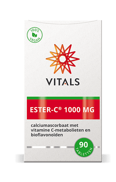Vitals Ester-C 1000mg Tabletten is een voedingssupplement op basis van een gepatenteerde vitamine C-formule bestaande uit calciumascorbaat dat al gedeeltelijk is omgezet, waardoor bepaalde natuurlijke metabolieten reeds aanwezig zijn, waaronder threonzuur. Threonzuur en de