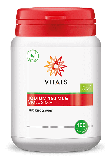 Vitals Jodium Biologisch Capsules is afkomstig van biologisch knotswier dat van nature een rijke bron is van jodium. Het product is gestandaardiseerd om per capsule 150 mcg jodium te bevatten. Jodium is een essentieel spoorelement dat een belangrijke rol speelt in onze