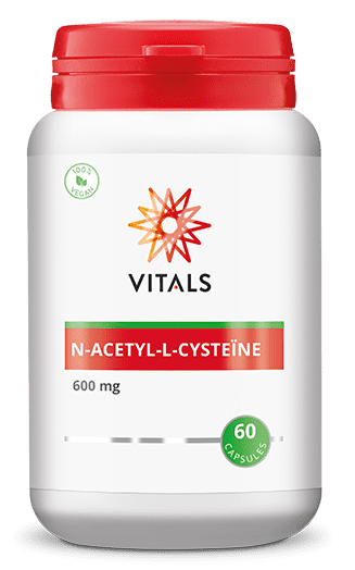 Vitals N-acetyl-l-cysteine 600mg Capsules (NAC) is de geacetyleerde vorm van L-cysteïne, een zwavelhoudend aminozuur dat het lichaam zelf kan maken uit het aminozuur L-methionine, maar waarvan de synthese onder bepaalde omstandigheden onvoldoende is om in de behoefte te