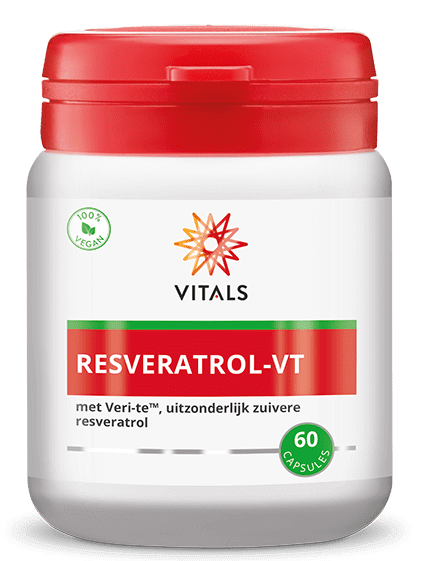 Vitals Resveratrol-VT Capsules is een voedingssupplement (kruidenpreparaat) dat bijzonder zuivere resveratrol bevat (Veri-te™) dat een gunstige werking heeft op de gezondheid van de hart en bloedvaten* en bijdraagt aan een goede doorbloeding*. Bovendien is resveratrol een