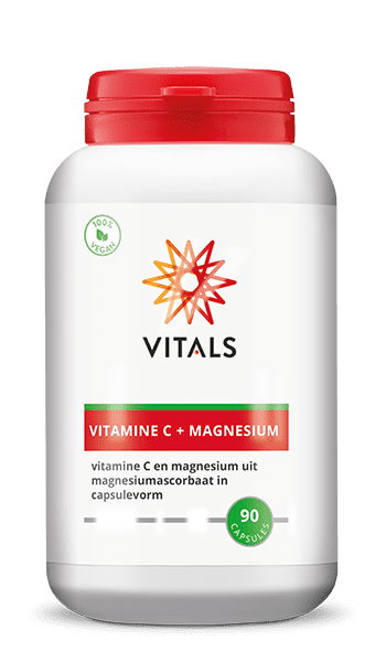Vitals Vitamine C + Magnesium Capsules is een veganistisch voedingssupplement met 800 mg vitamine C in niet-zure vorm en 60 mg magnesium uit het goed opneembare magnesiumascorbaat. Dit supplement is ideaal voor mensen die ascorbinezuur niet goed verdragen. Magnesiumascorbaat