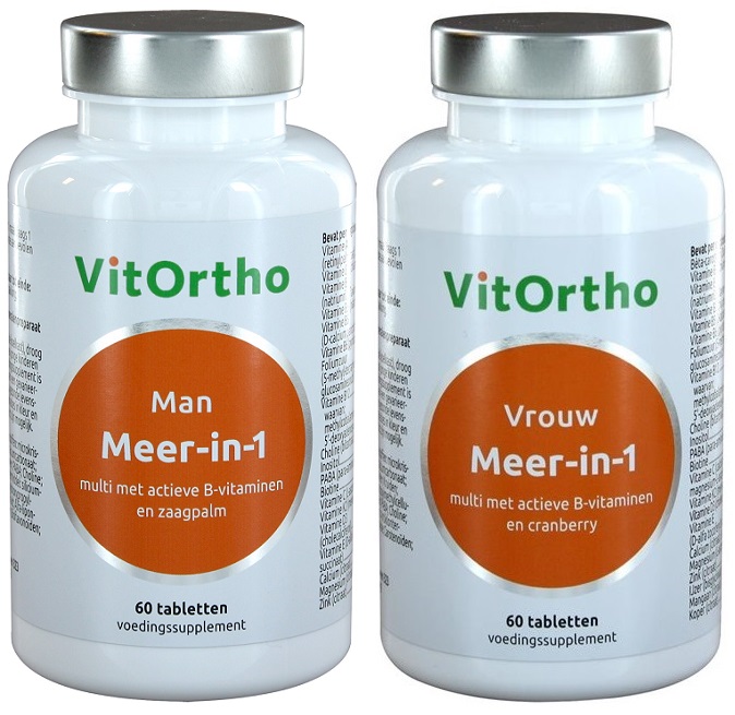 VitOrtho Meer in 1 Man & Vrouw is een combinatieverpakking om samen te zorgen voor een goede weerstand. Dit ideale duo bevat twee vitamine- en mineralenpreparaten met enkel de beste vitamine- en mineraalverbindingen. De tabletten zijn bij beide complexen vrij van