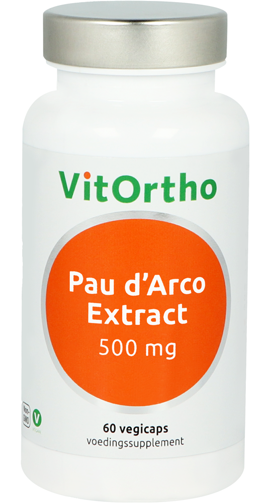 VitOrtho Pau d’Arco Extract 500 mg Vegicaps is een voedingssupplement met 4:1 extract dat overeen komt met 2 gram kruid.Dagelijks gebruik van 1500 mg Pau d'Arco of meer helpt het natuurlijk afweersysteem van de lichaamscellen*. Helpt om lekker te slapen*. Goed voor de