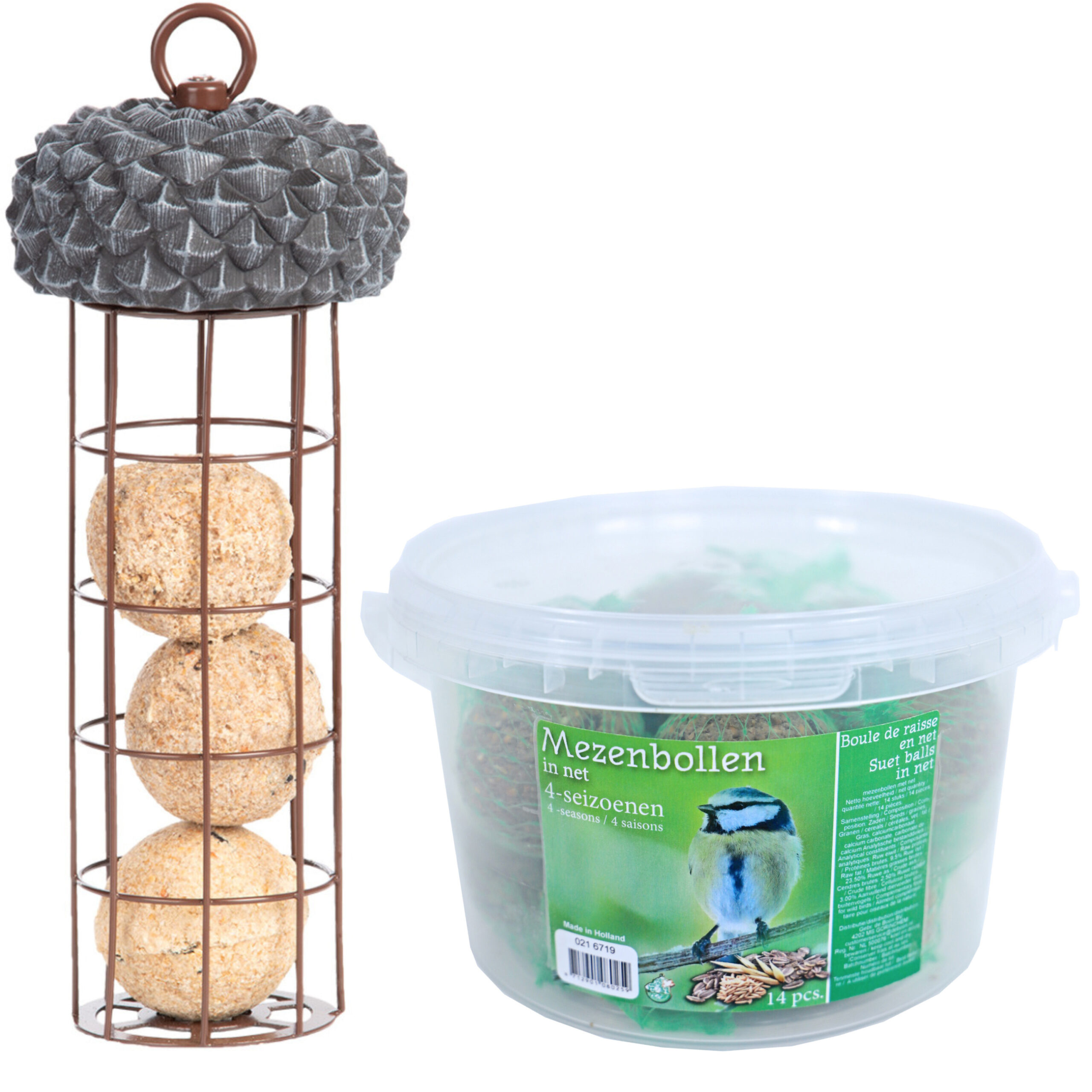 Vogel voedersilo met eikeldeksel inclusief 14 vetbollen