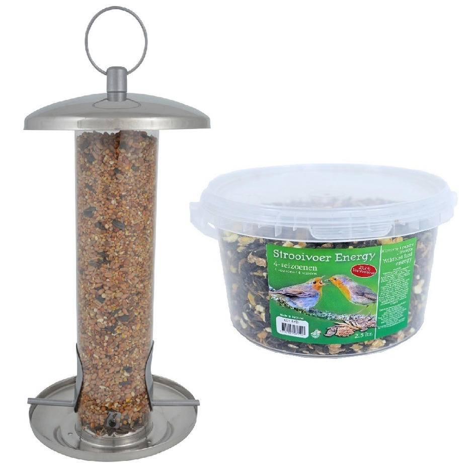 Vogel voedersilo RVS 27 cm inclusief 4-seizoenen energy vogelvoer