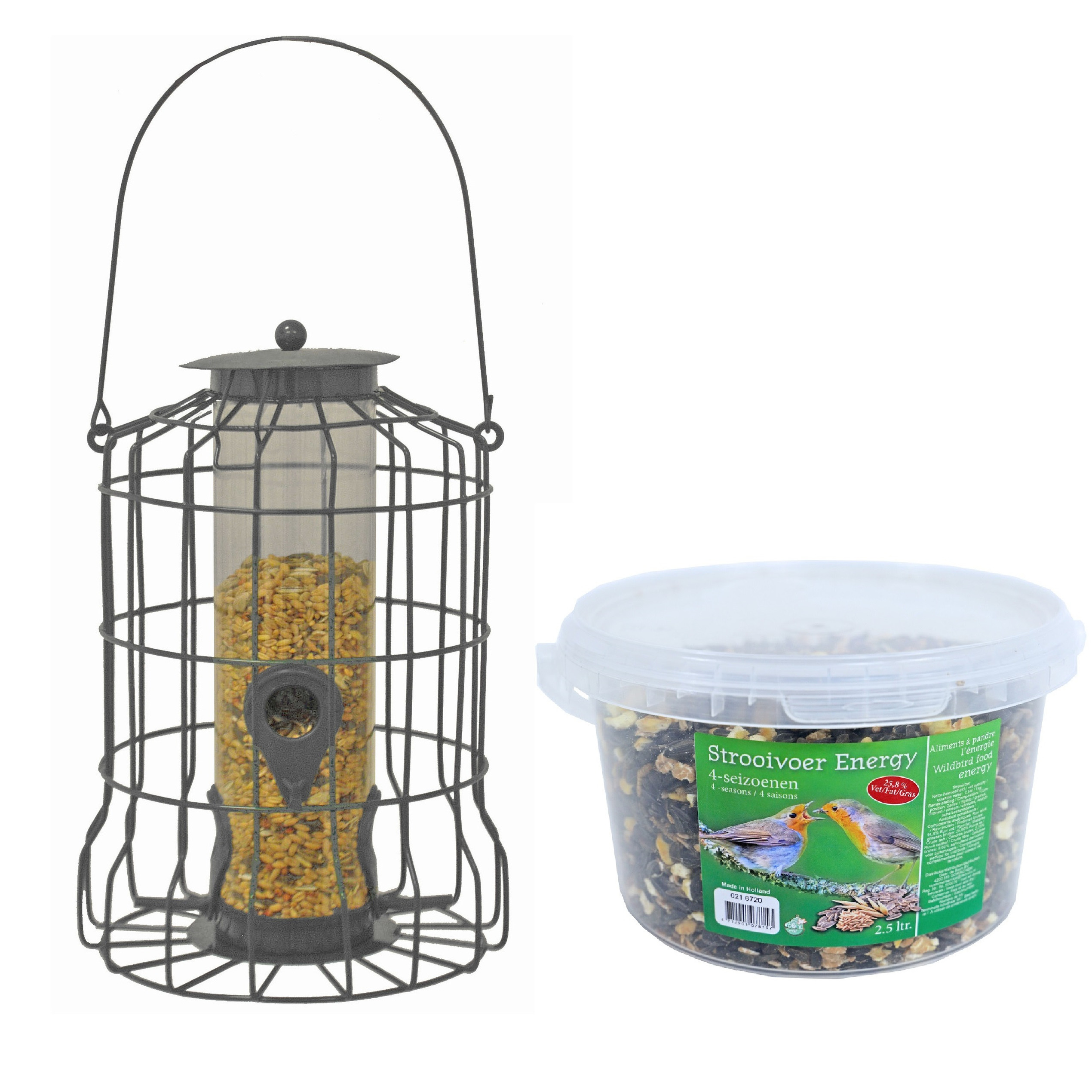 Vogel voedersilo voor kleine vogels metaal grijs 36 cm inclusief 4-seizoenen energy vogelvoer. Deze voedersilo heeft 4 gaten met stokjes en een extra beschermrand waardoor de grote vogels het vogelvoer niet kunnen pakken en er genoeg eten overblijft voor de kleine vogels. De vogelvoedersilo is gemakkelijk op te hangen aan een tak of haakje. Het voer is bijzonder voedzaam en voorzien van alle benodigde prote?nen en vitaminen voor allerlei soorten tuinvogels. Afmeting: ca. 18 x 18 x 36 cm. Materiaal: metaal. , Dit artikel bestaat uit:, 1x Vogelvoer strooivoer energy 4-seizoenen emmer 2,5 liter, 1x Vogel voedersilo – grijs – 36cm – metaal – voor kleine vogels geschikt
