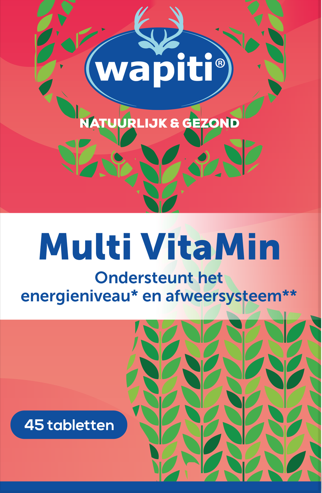 Wapiti Multi VitaMin Tabletten is een geconcentreerd en uitgebalanceerd voedingssupplement dat alle essentiële vitamines en mineralen bevat die u nodig heeft voor voldoende energie en een goede weerstand. Deze krachtige multi-formule heeft een gunstige invloed op de