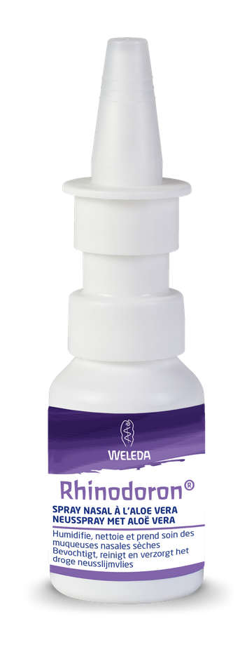 Weleda Rhinodoron Neusspray is een neusspray met Aloë Vera. Rhinodoron Neusspray bevochtigt, reinigt en verzorgt het droge neusslijmvlies, o.a. bij verkoudheid. Door de isotone zoutoplossing in de spray wordt het droge neusslijmvlies bevochtigt. Hierdoor komen de