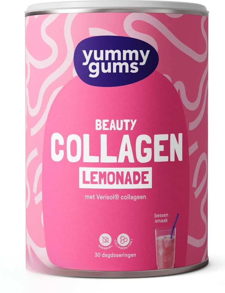 Yummygums Beauty Collagen Lemonade (240 gram) is een collageensupplement in poedervorm, oplosbaar tot een heerlijk lichte, zoetfrisse limonade. Het bevat VERISOLĀ® collageen, een gehydrolyseerd type-1 collageen, dat bestaat uit natuurlijke bioactieve collageenpeptiden die