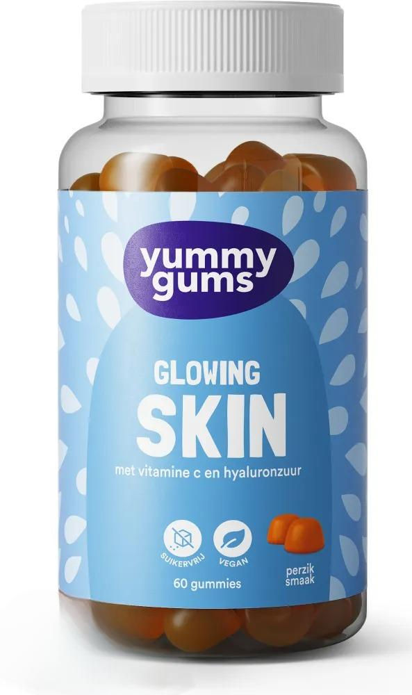 Yummygums Glowing Skin Gummies (60 stuks) zijn fruitige gummies met vitamine C en hyaluronzuur. Met deze combinatie ondersteunt u uw huid van binnenuit, op een eenvoudige en smakelijke manier. Yummygums Glowing Skin Gummies:Vitamine C draagt bij tot de normale