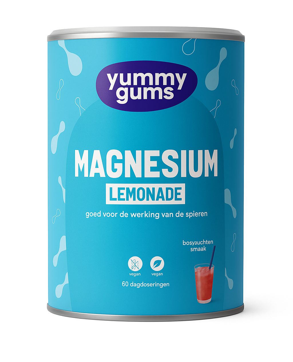 Yummygums Magnesium Lemonade (240 gram) is een hoog gedoseerd magnesiumsupplement in poedervorm, oplosbaar tot een lichtzoete limonade met bosvruchtensmaak. Deze formule bevat magnesium in de goed opneembare vorm van magnesiumcitraat – een combinatie van magnesium en