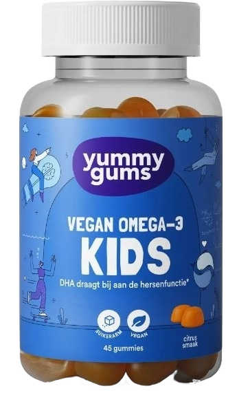 Yummygums Omega-3 Vegan Gummies (45 stuks) zijn een plantaardige bron van het omega-3 vetzuur DHA, afkomstig uit algenolie – een duurzaam en visvrij alternatief zonder vissmaak. Deze gummies bevatten gepatenteerde Nu-Mega™ DHA, een hoogwaardige en goed opneembare vorm van