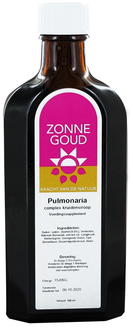 Zonnegoud Pulmonaria Complex Siroop is een kruidenpreparaat met extracten van onder andere de plant Gevlekt Longkruid (pulmonaria). Longkruid bevat slijmstoffen, minerale substanties waaronder kiezelzuur, allantoïne en looistoffen. Daarnaast bevat de plant de flavonoïden